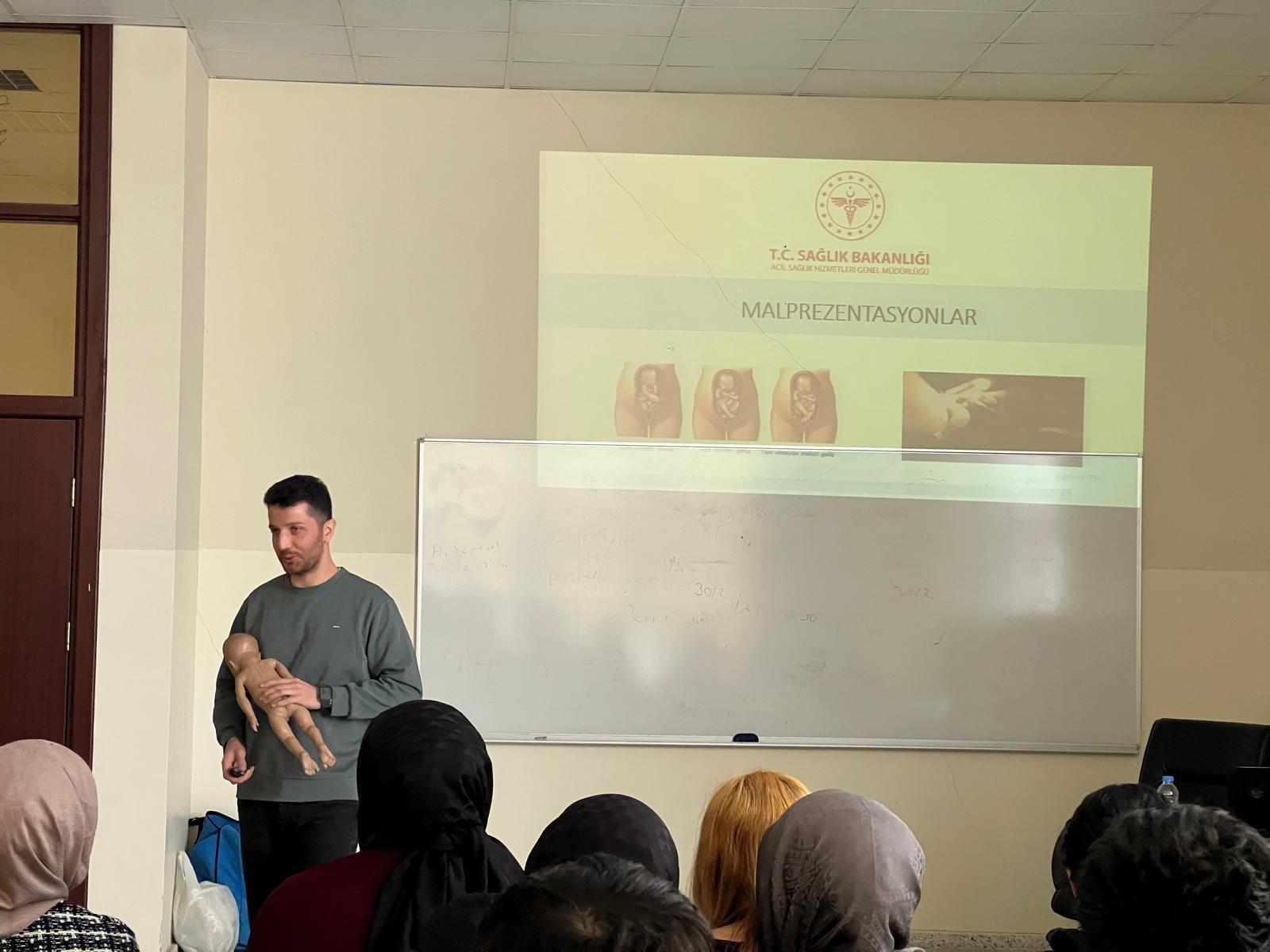 Öğrencilerimiz, sahada karşılaşabilecekleri doğum ve obstetrik acil durumlara yönelik teorik ve uygulamalı bilgiler edinme fırsatı buldu.